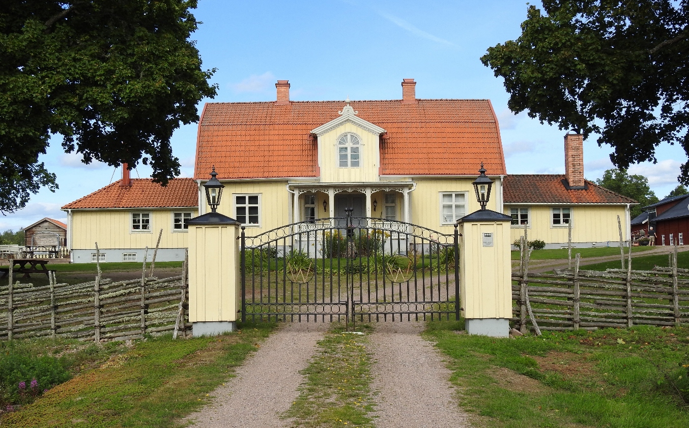 stod förmodligen färdig 1802 och kompletterades 1852 med kökstillbyggnaden till höger. 2011 blev huset symmetriskt genom en motsvarande